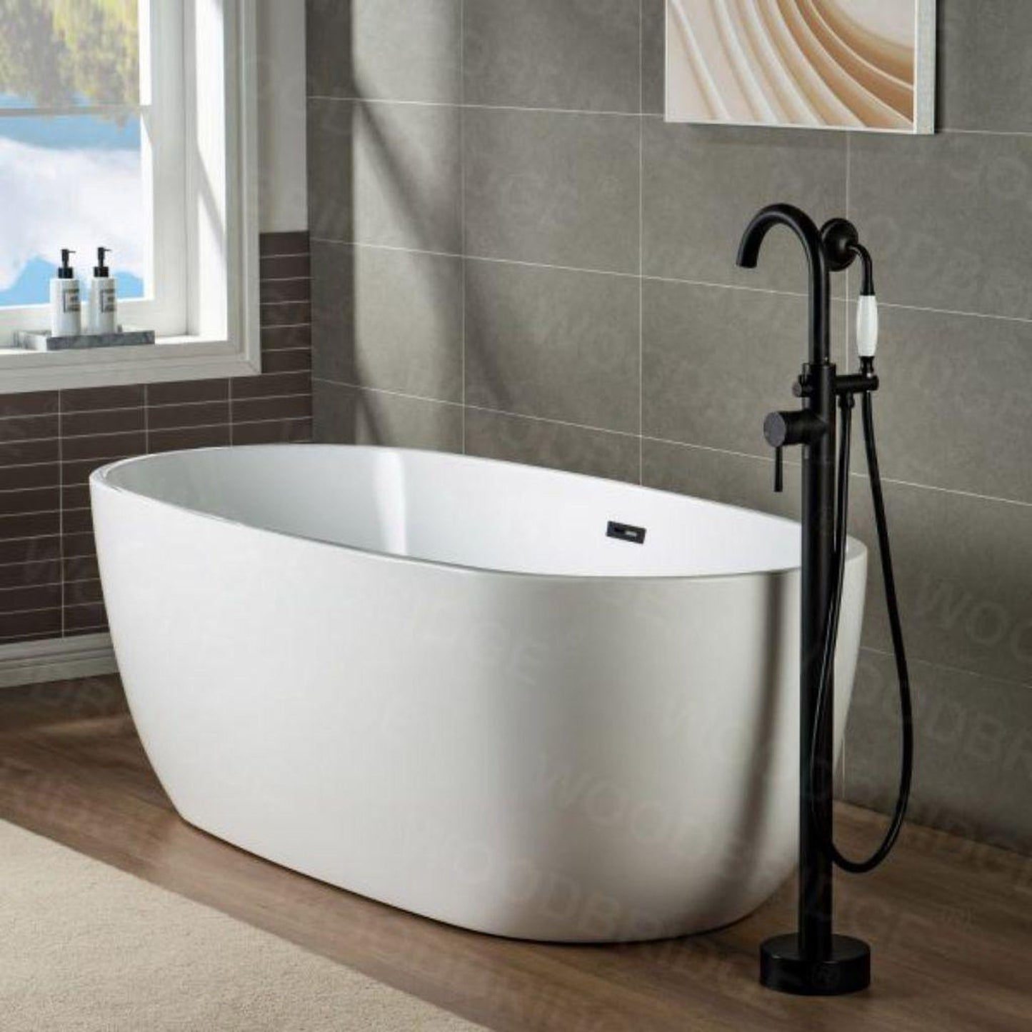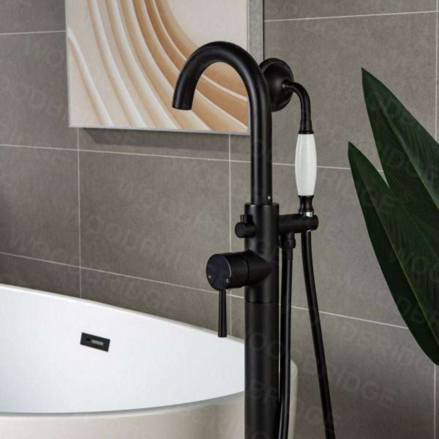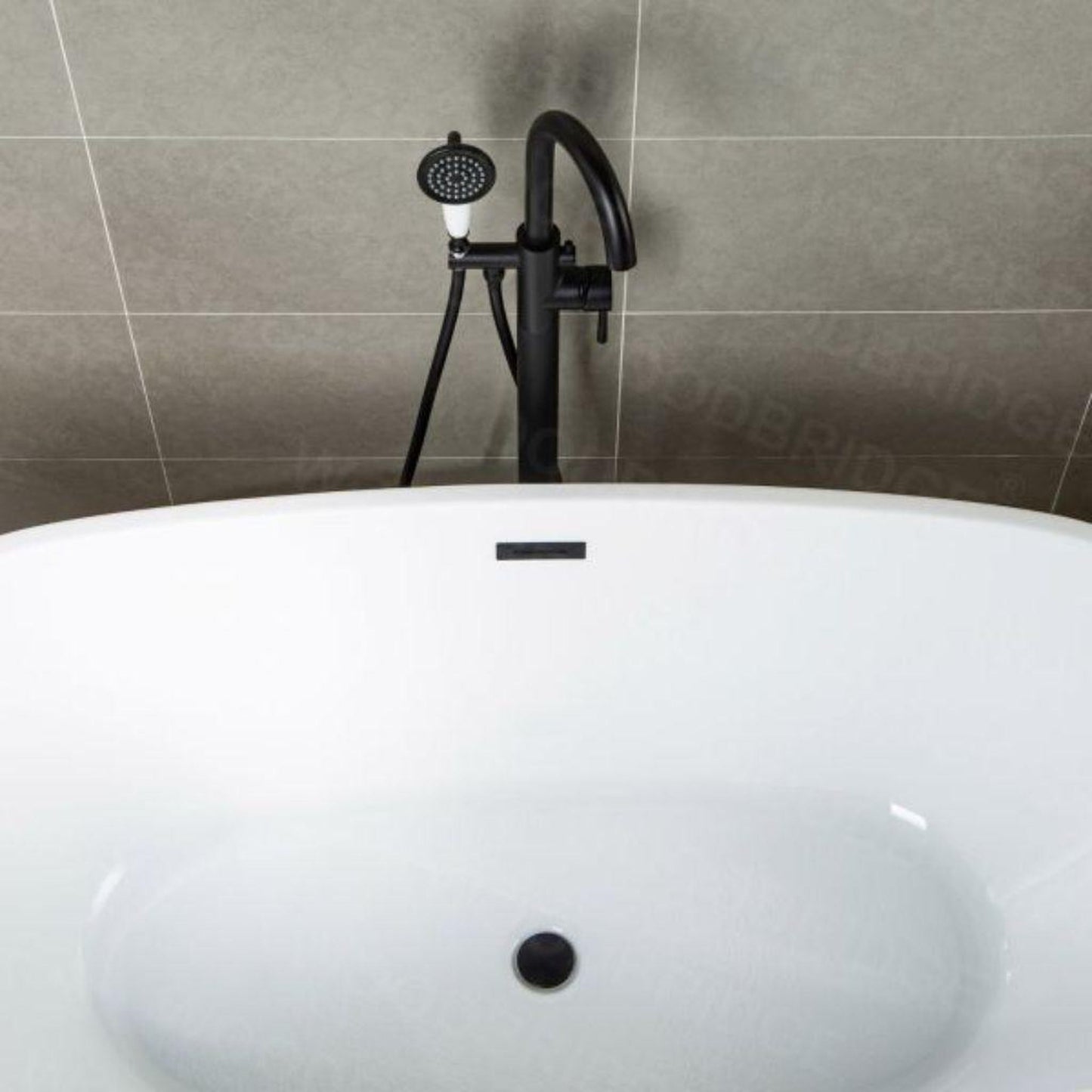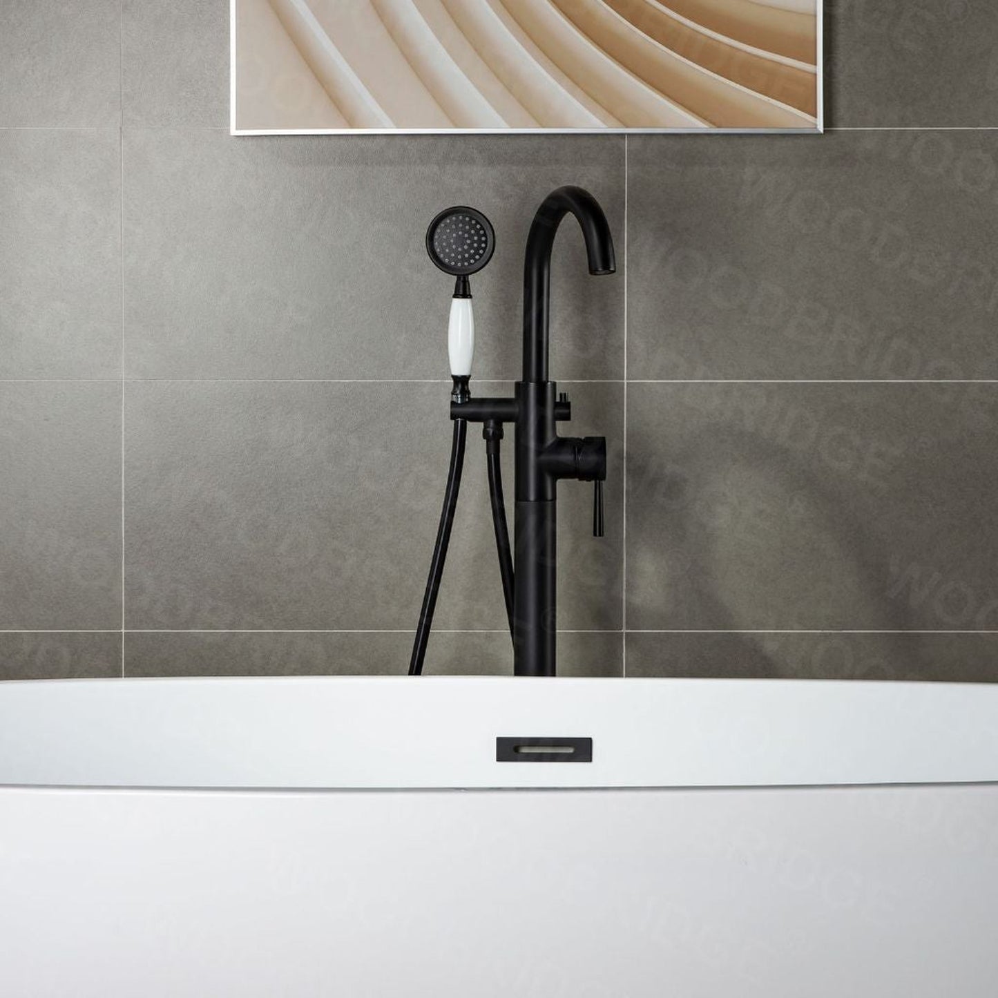 WoodBridge F0006MBVT Matte Black Fusion Single Handle Floor Mount Freestanding Tub Filler Faucet With Telephone Hand Shower