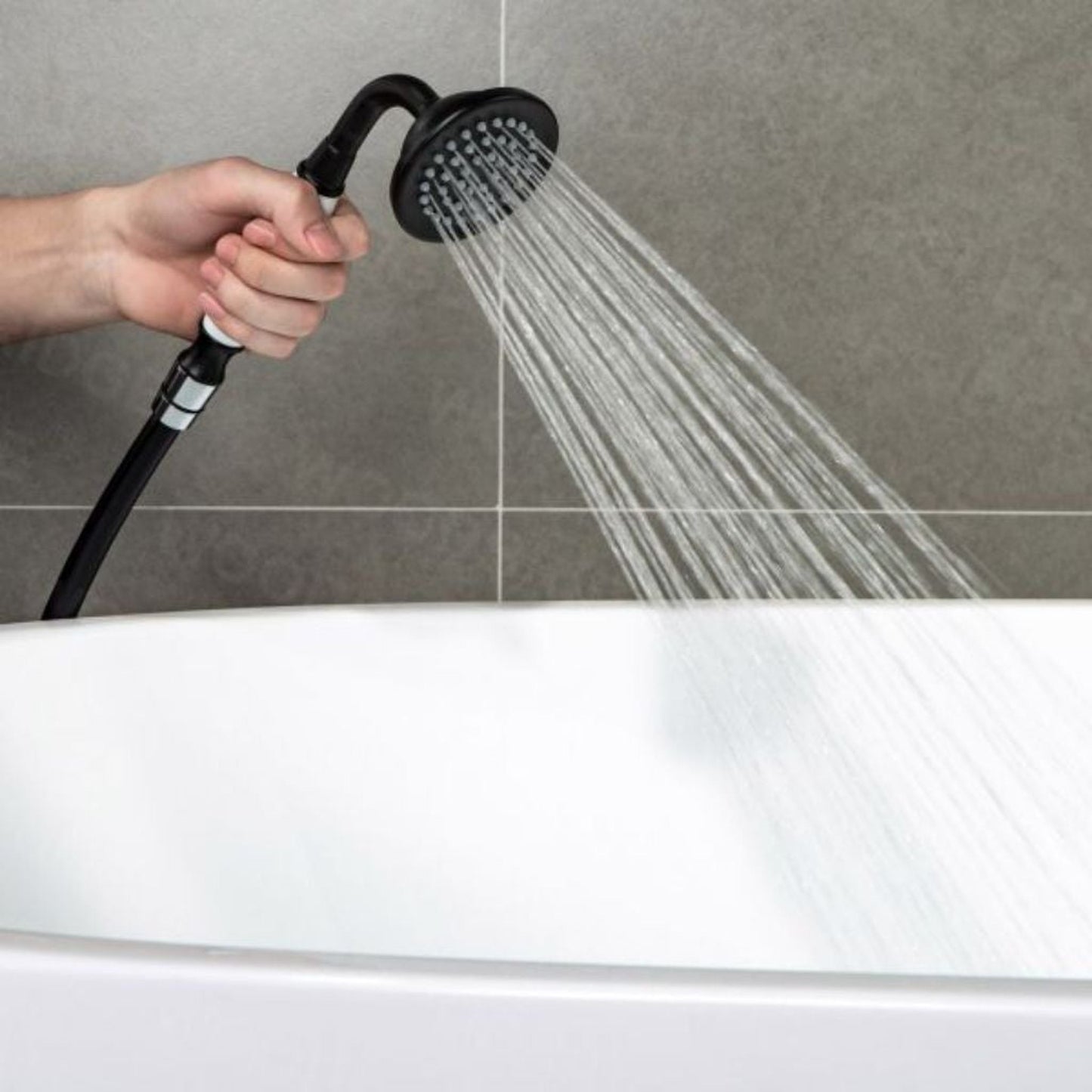 HANDSHOWER AND HOSE: Classic telephone-style hand shower with a vintage white porcelain handle and a matching 60-inch PVC shower hose is great for rinsing off after a bath, hair washing, tub cleaning and washing pets.
