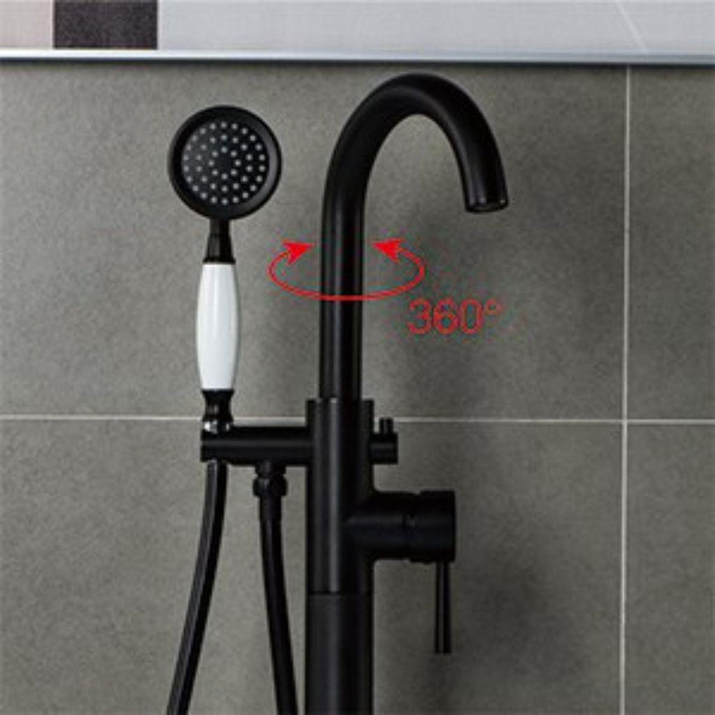 PACKAGE CONTENT: Package includes bathtub faucet (crafted from high-quality brass), brass tube, hand shower with 60" double spiral stainless steel hose, 35" Hot and Cold water inlet hoses, metal tripod with mounting hardware, base cover and installation instruction.