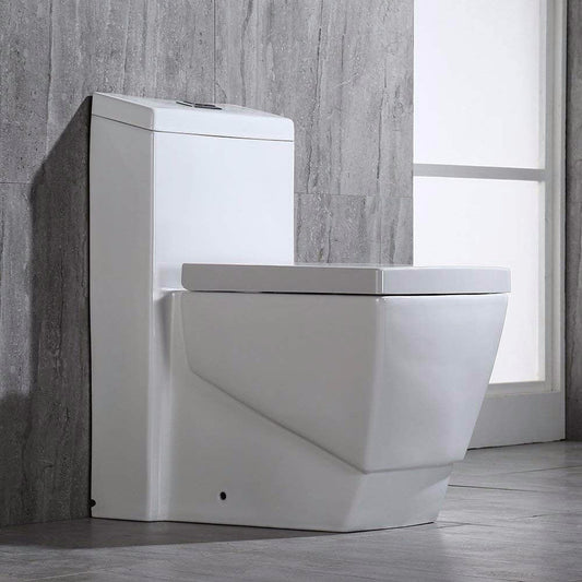 WoodBridge T-0020 White Dual Flush Elongated One Piece Toilet Chair Height With Soft Closing Seat, Deluxe Square Design