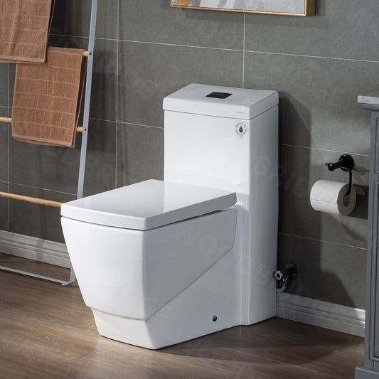 WoodBridge T0020-MB Modern Square Design One Piece Dual Flush 1.28 GP Toilet, Chair Height With Soft Closing Seat and Matte Black Button