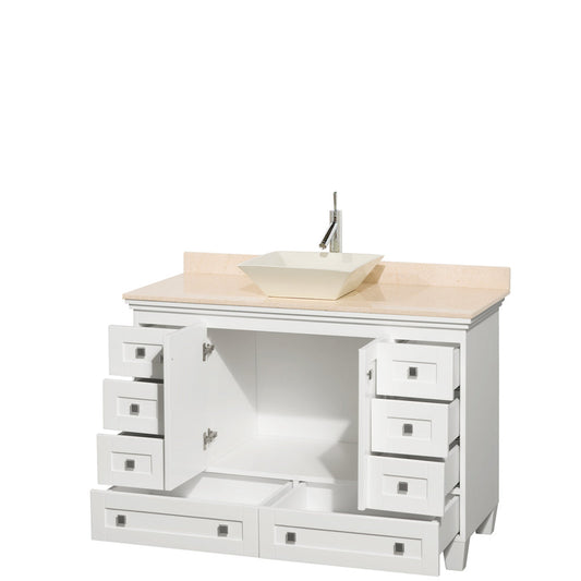 Wyndham Collection Acclaim 48" Single Bathroom Vanity in White With Ivory Marble Countertop & Pyra Bone Porcelain Sink