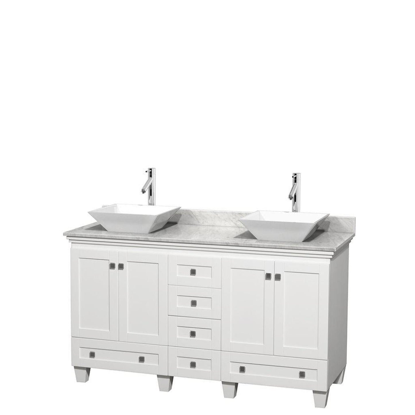 Wyndham Collection Acclaim 60" Double Bathroom White Vanity With White Carrara Marble Countertop And Pyra White Sinks
