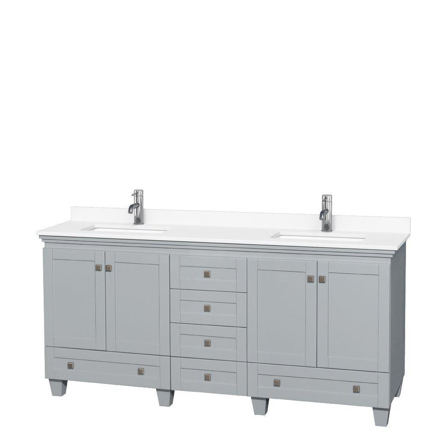 Wyndham Collection Acclaim 72" Double Bathroom Oyster Gray Vanity With White Cultured Marble Countertop And Undermount Square Sinks