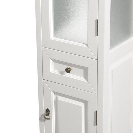 Wyndham Collection Andover White Solid Oak Bathroom Linen Tower With Cabinet Storage