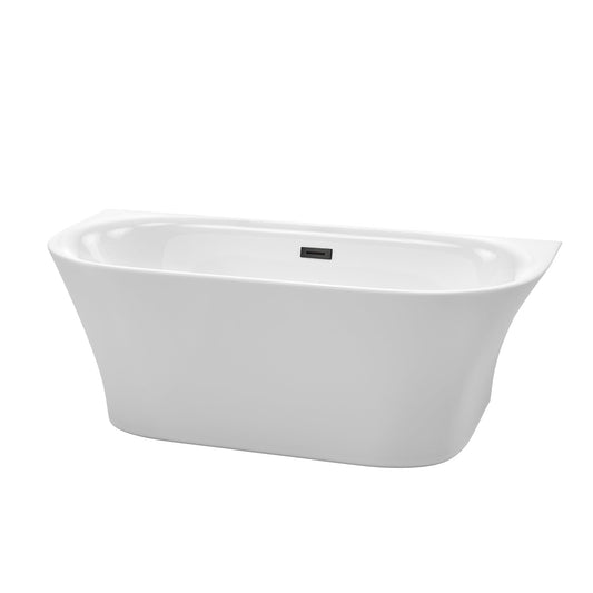 Wyndham Collection Cybill 67" Freestanding Bathtub in White With Matte Black Drain and Overflow Trim