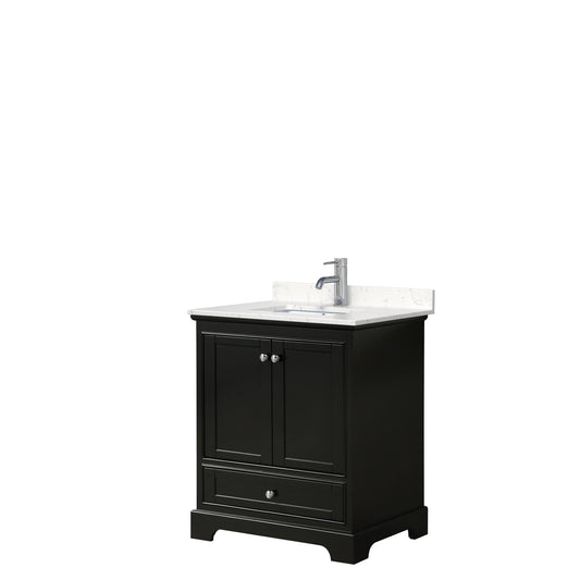 Wyndham Collection Deborah 30" Single Bathroom Vanity in Dark Espresso, Light-Vein Carrara Cultured Marble Countertop, Undermount Square Sink, No Mirror