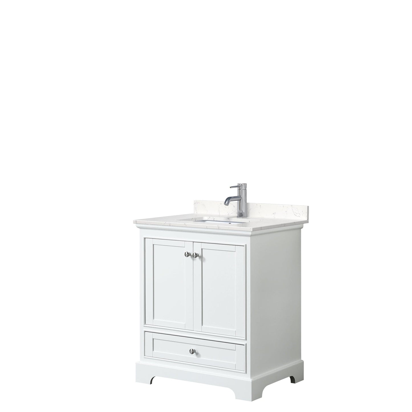 Wyndham Collection Deborah 30" Single Bathroom Vanity in White, Light-Vein Carrara Cultured Marble Countertop, Undermount Square Sink, No Mirror