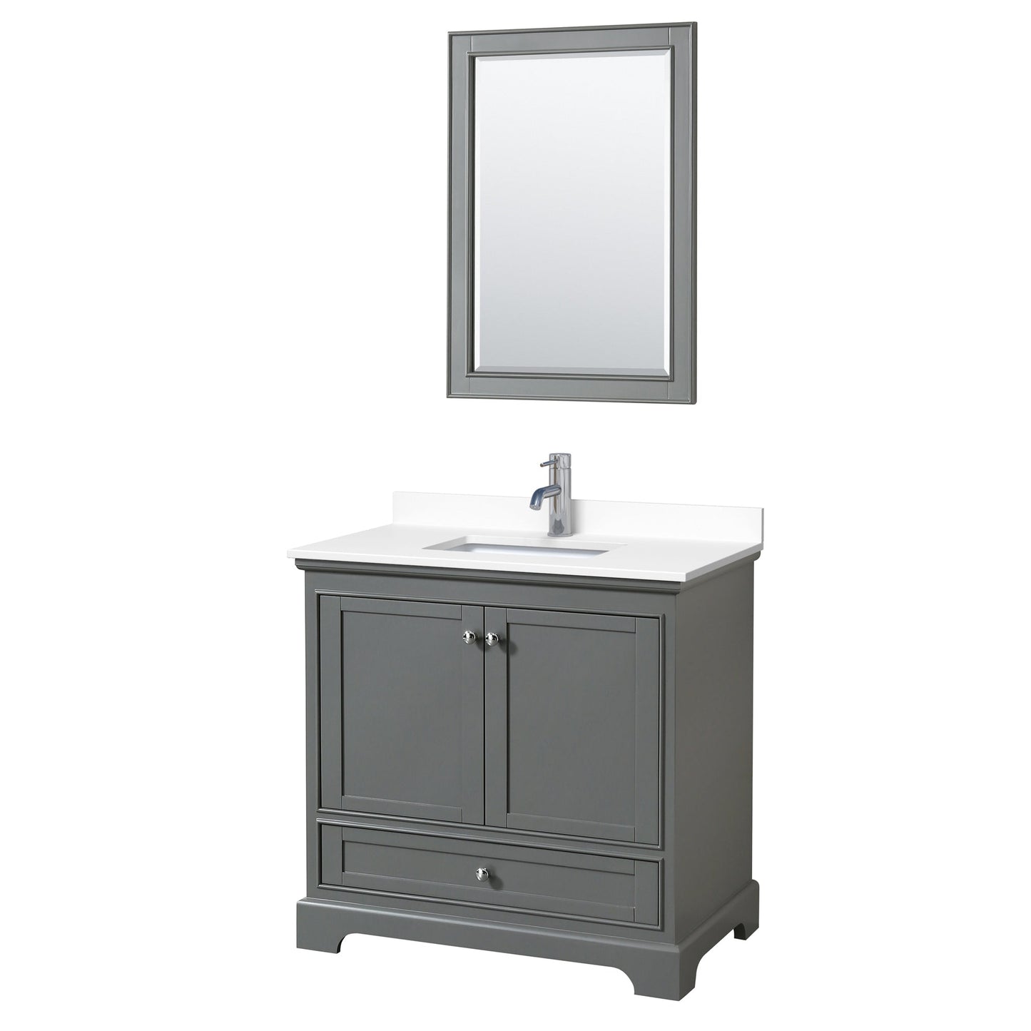 Wyndham Collection Deborah 36" Single Bathroom Vanity in Dark Gray, White Cultured Marble Countertop, Undermount Square Sink, 24" Mirror