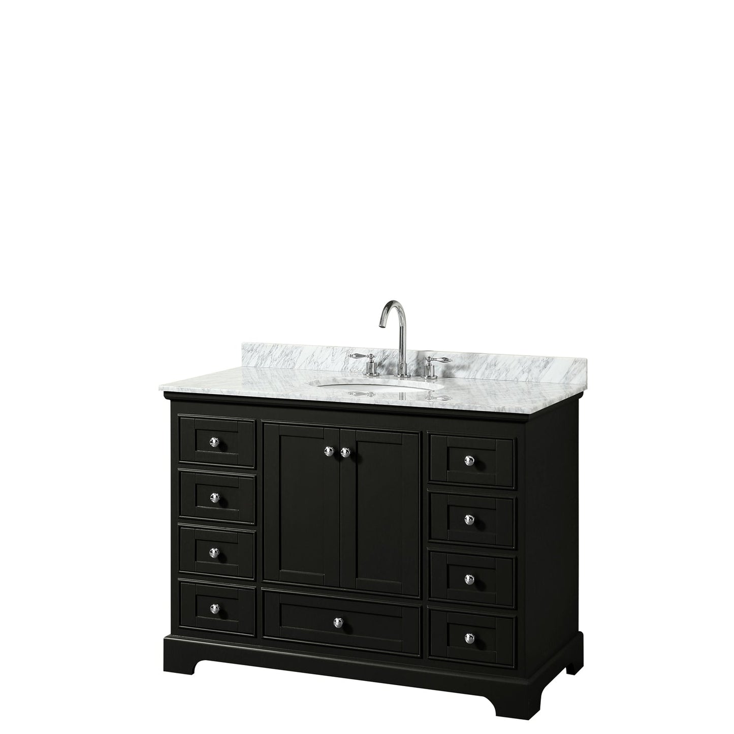 Wyndham Collection Deborah 48" Single Bathroom Vanity in Dark Espresso, White Carrara Marble Countertop, Undermount Oval Sink, and No Mirror