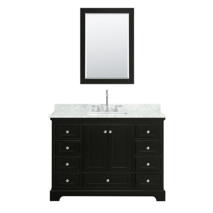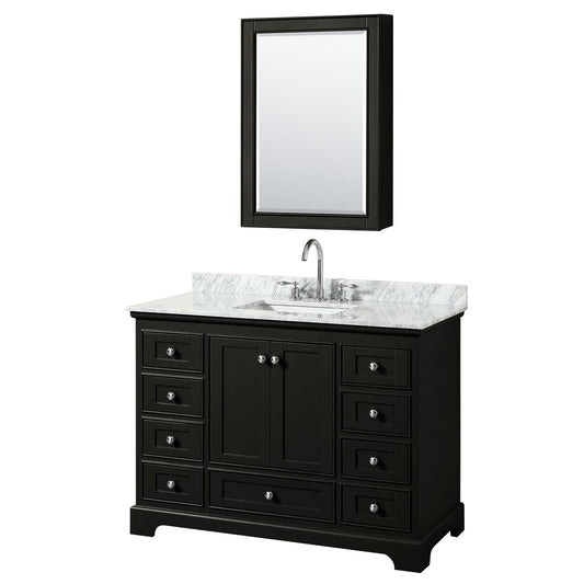 Wyndham Collection Deborah 48" Single Bathroom Vanity in Dark Espresso, White Carrara Marble Countertop, Undermount Square Sink, and Medicine Cabinet