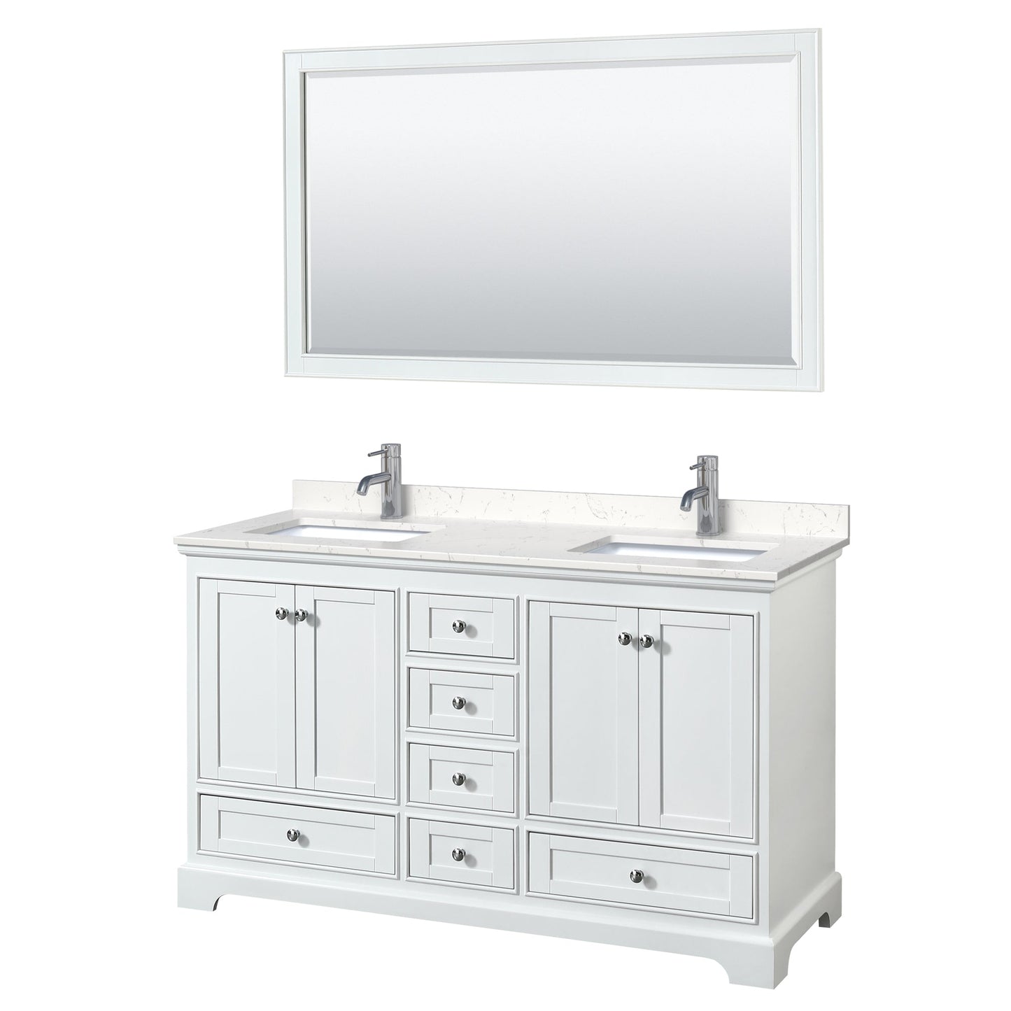 Wyndham Collection Deborah 60" Double Bathroom Vanity in White, Light-Vein Carrara Cultured Marble Countertop, Undermount Square Sinks, 58" Mirror