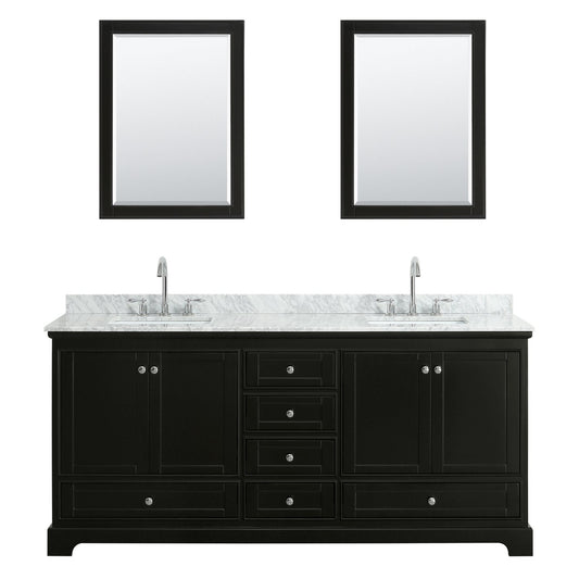 Wyndham Collection Deborah 80" Double Bathroom Vanity in Dark Espresso, White Carrara Marble Countertop, Undermount Square Sinks, and Medicine Cabinet