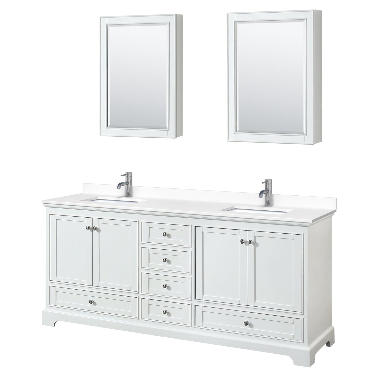 Wyndham Collection Deborah 80" Double Bathroom Vanity in White, White Cultured Marble Countertop, Undermount Square Sinks, Medicine Cabinet