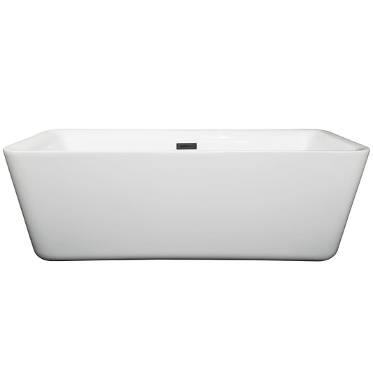 Wyndham Collection Emily 69" Freestanding Bathtub in White With Matte Black Drain and Overflow Trim