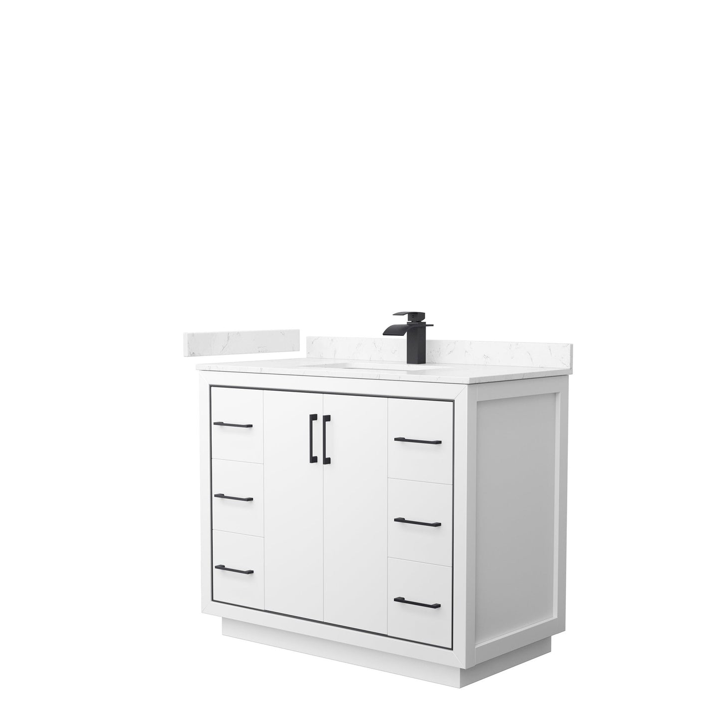 Wyndham Collection Icon 42" Single Bathroom Vanity in White, Carrara Cultured Marble Countertop, Undermount Square Sink, Matte Black Trim