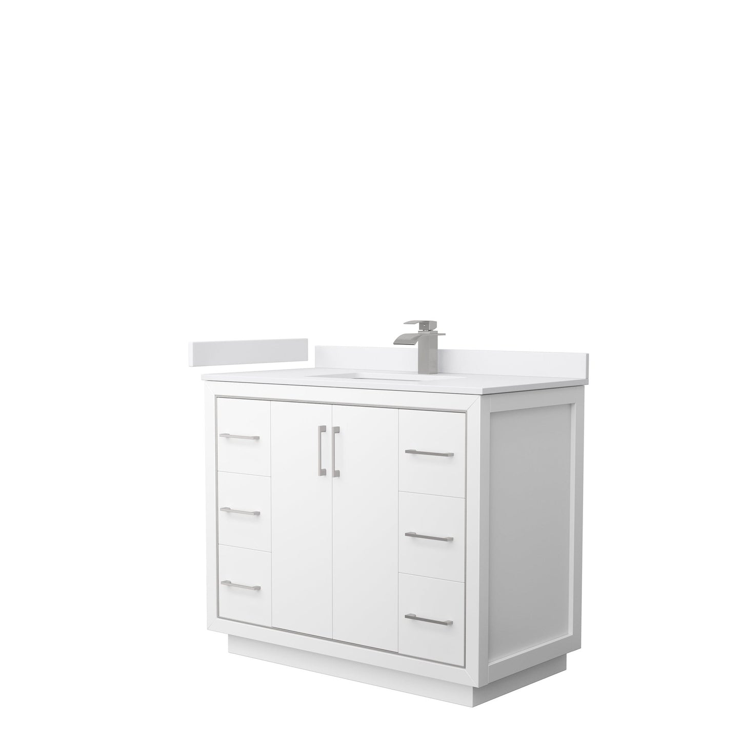 Wyndham Collection Icon 42" Single Bathroom Vanity in White, White Cultured Marble Countertop, Undermount Square Sink, Brushed Nickel Trim