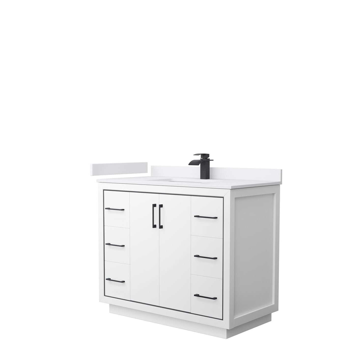 Wyndham Collection Icon 42" Single Bathroom Vanity in White, White Cultured Marble Countertop, Undermount Square Sink, Matte Black Trim