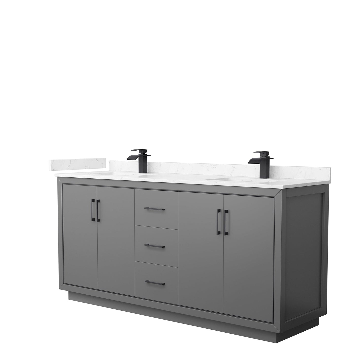Wyndham Collection Icon 72" Double Bathroom Vanity in Dark Gray, Carrara Cultured Marble Countertop, Undermount Square Sinks, Matte Black Trim