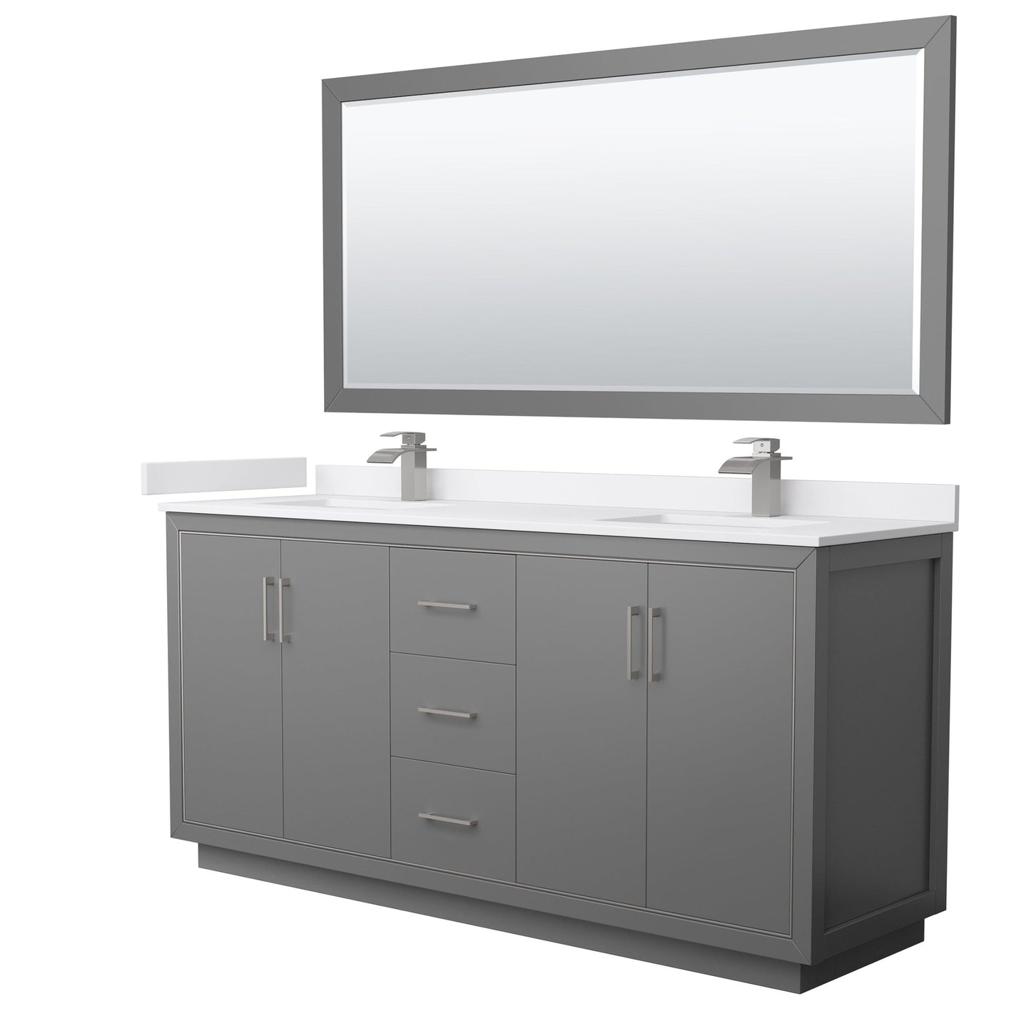 Wyndham Collection Icon 72" Double Bathroom Vanity in Dark Gray, White Cultured Marble Countertop, Undermount Square Sinks, Brushed Nickel Trim, 70" Mirror
