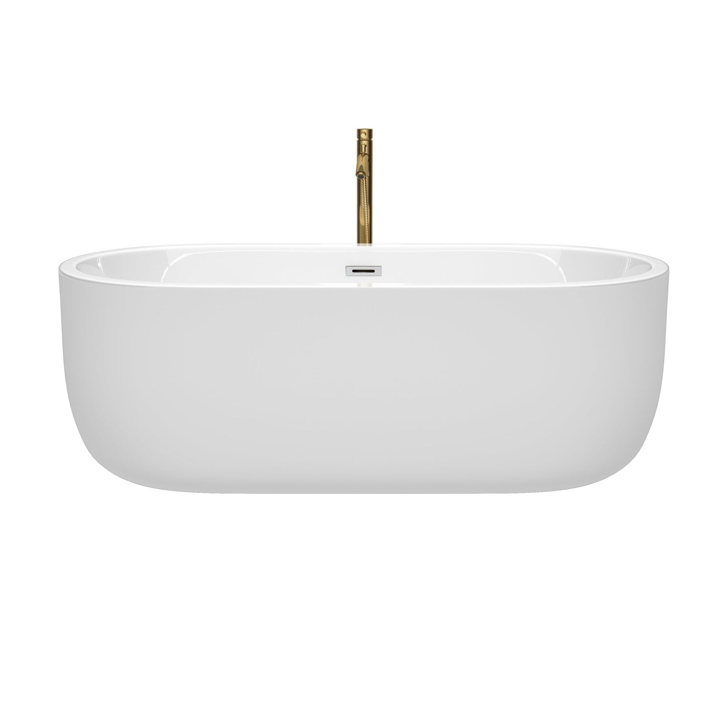 Wyndham Collection Juliette 67" Freestanding Bathtub in White With Polished Chrome Trim and Floor Mounted Faucet in Brushed Gold