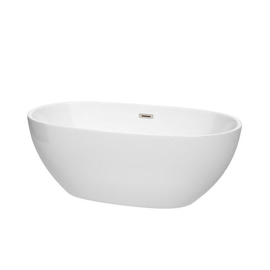 Wyndham Collection Juno 63" Freestanding Bathtub in White With Brushed Nickel Drain and Overflow Trim