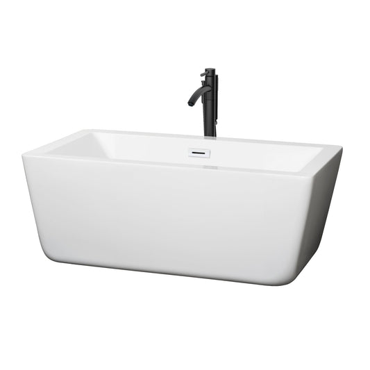 Wyndham Collection Laura 59" Freestanding Bathtub in White With Shiny White Trim and Floor Mounted Faucet in Matte Black