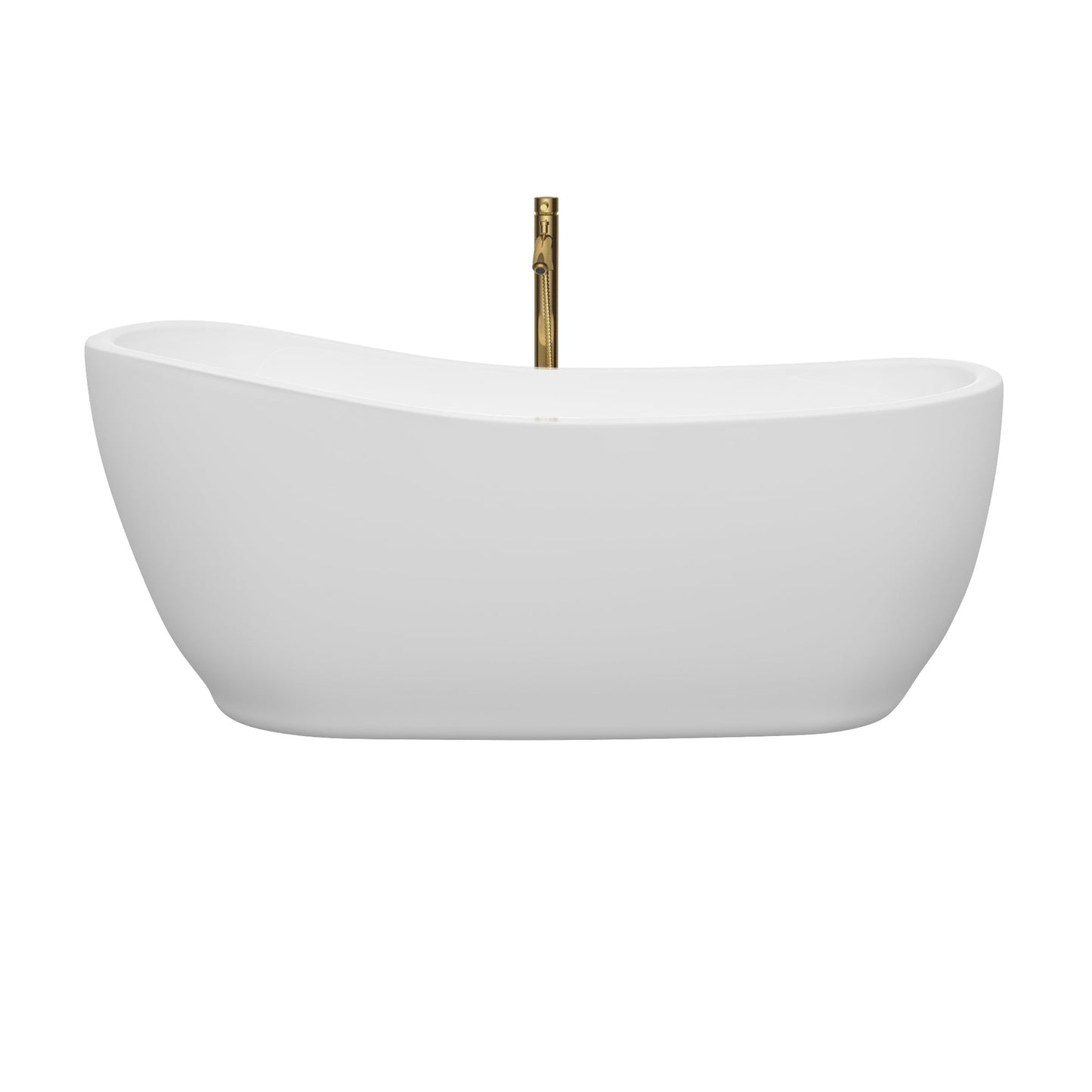 Wyndham Collection Margaret 66" Freestanding Bathtub in White With Polished Chrome Trim and Floor Mounted Faucet in Brushed Gold