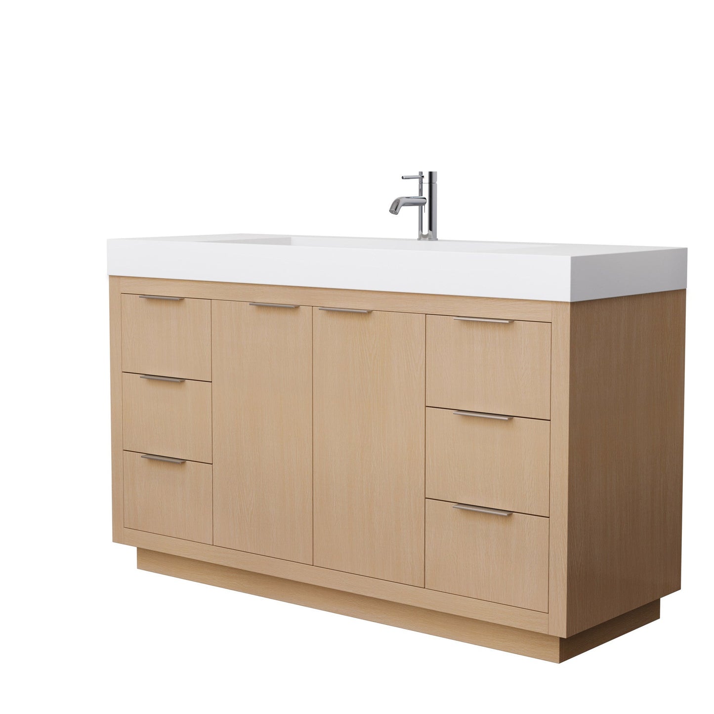 Wyndham Collection Maroni 60" Single Bathroom Vanity in Light Straw, 4" Thick Matte White Solid Surface Countertop, Integrated Sink