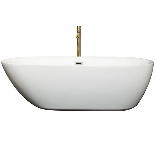 Wyndham Collection Melissa 71" Freestanding Bathtub in White With Polished Chrome Trim and Floor Mounted Faucet in Brushed Gold