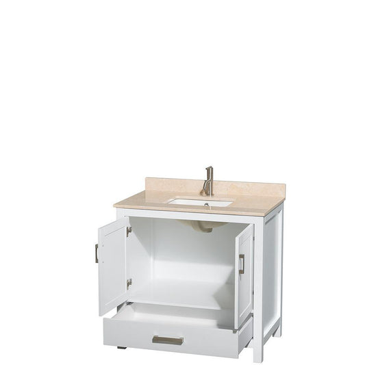 Wyndham Collection Sheffield 36" Single Bathroom Vanity in White, Ivory Marble Countertop, Undermount Square Sink, and No Mirror