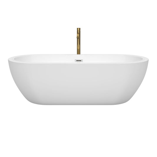 Wyndham Collection Soho 72" Freestanding Bathtub in White With Polished Chrome Trim and Floor Mounted Faucet in Brushed Gold