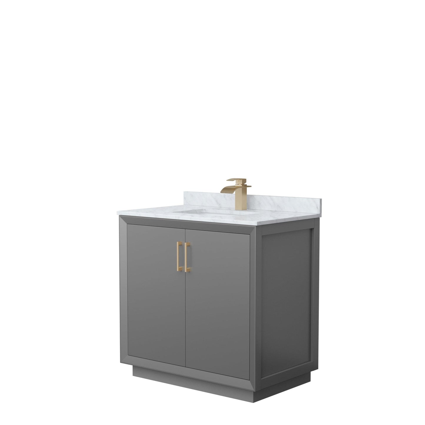 Wyndham Collection Strada 36" Single Bathroom Vanity in Dark Gray, White Carrara Marble Countertop, Undermount Square Sink, Satin Bronze Trim