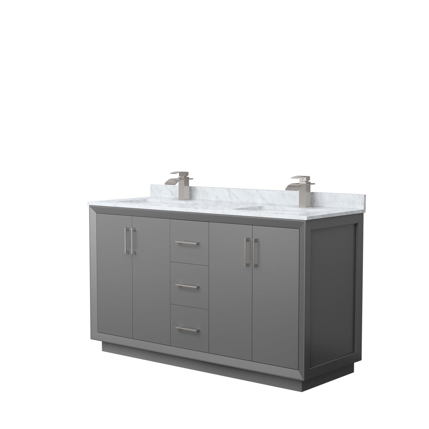 Wyndham Collection Strada 60" Double Bathroom Vanity in Dark Gray, White Carrara Marble Countertop, Undermount Square Sink, Brushed Nickel Trim