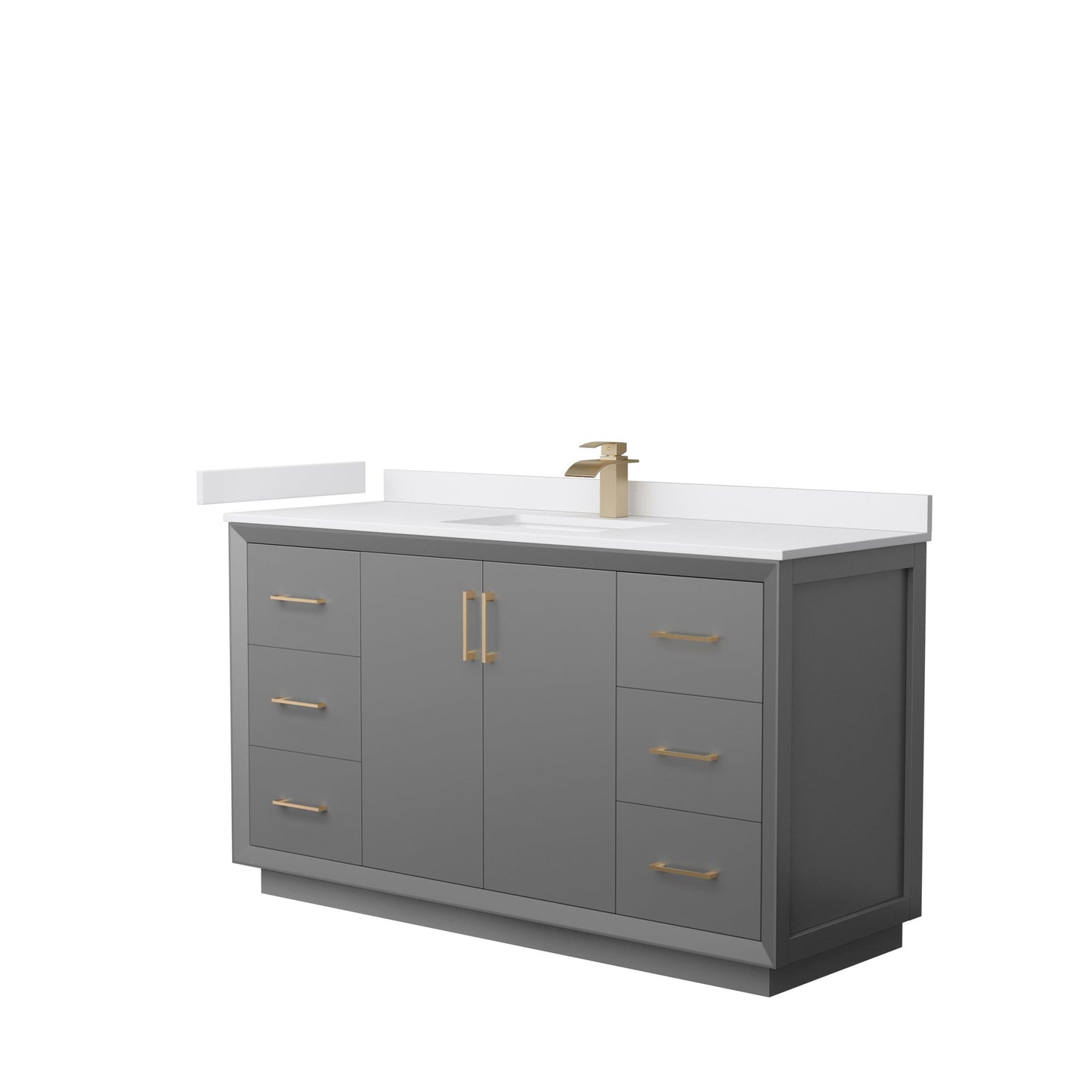 Wyndham Collection Strada 60" Single Bathroom Vanity in Dark Gray, White Cultured Marble Countertop, Undermount Square Sink, Satin Bronze Trim