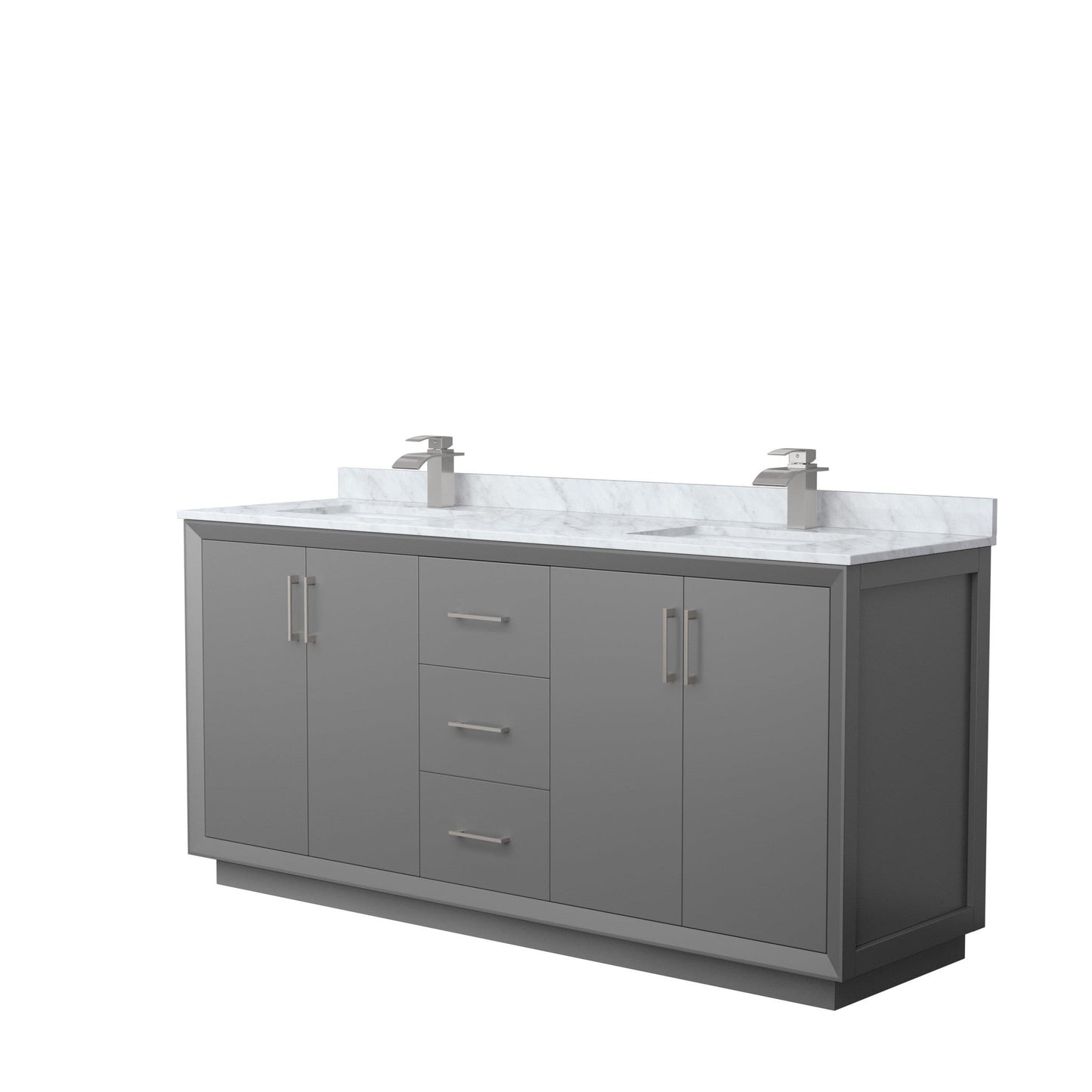 Wyndham Collection Strada 72" Double Bathroom Vanity in Dark Gray, White Carrara Marble Countertop, Undermount Square Sink, Brushed Nickel Trim