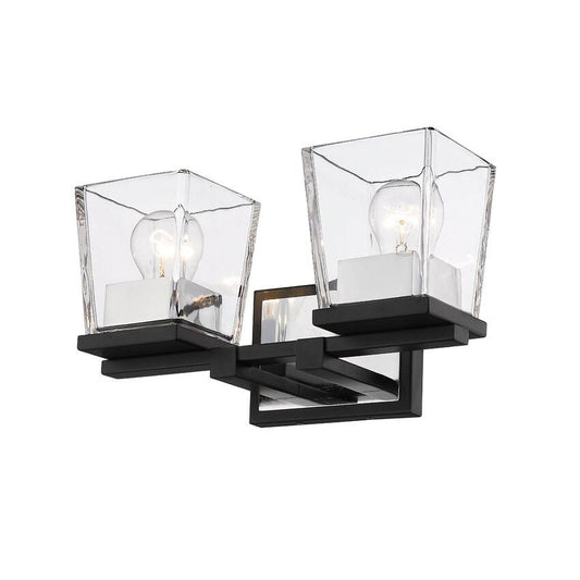 Z-Lite Bleeker Street 14" 2-Light Matte Black and Chrome Vanity Light With Clear Glass Shade