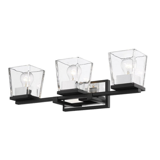 Z-Lite Bleeker Street 25" 3-Light Matte Black and Chrome Vanity Light With Clear Glass Shade