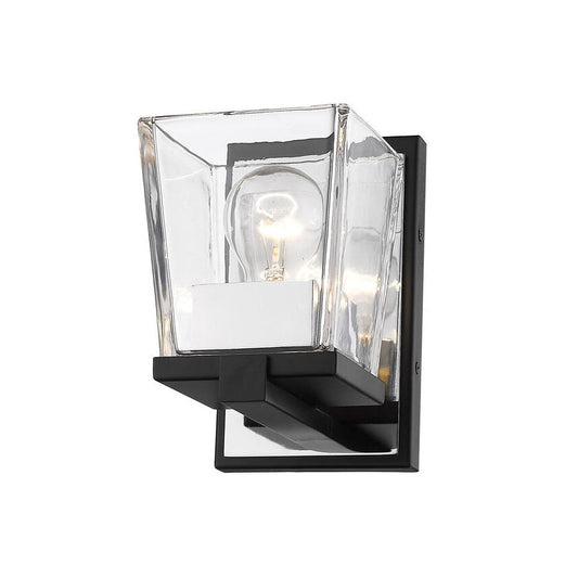 Z-Lite Bleeker Street 5" 1-Light Matte Black and Chrome Wall Sconce With Clear Glass Shade