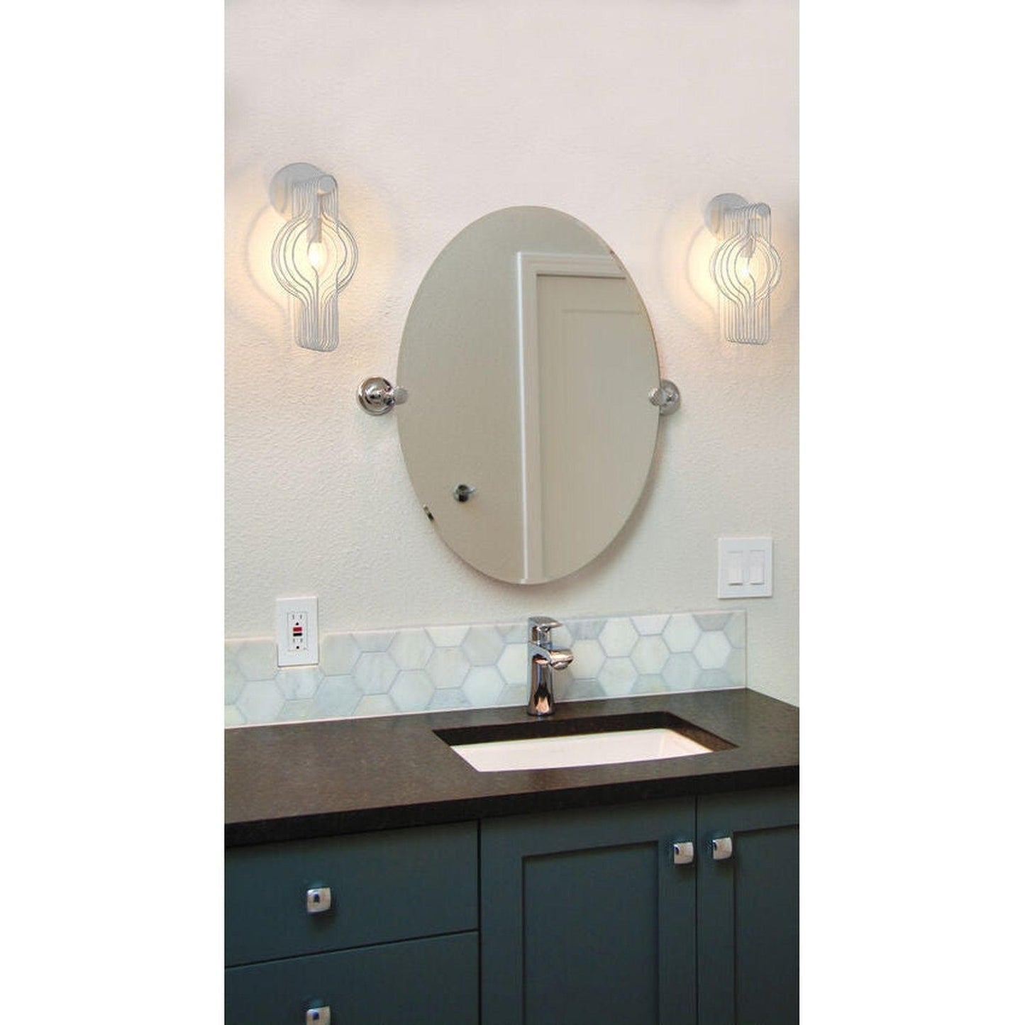 Doubling down on ultra-modern style, this single-light wall sconce becomes a focal point in a contemporary bathroom, bedroom, or hallway. Careful detailing yields a linear design of long white finish steel rods and a glossy white finish frame. A charming candelabra bulb mount delivers a softening effect with pure style.
