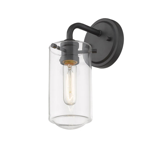 Z-Lite Delaney 5" 1-Light Matte Black Wall Sconce With Clear Glass Shade