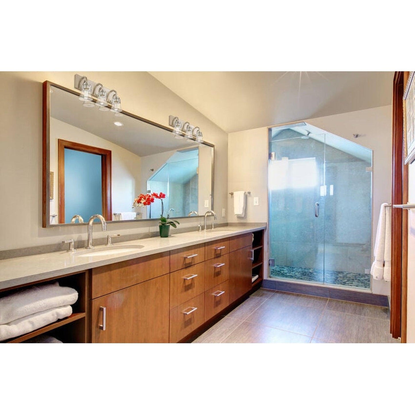 Hugged by the curved ribbon-inspired arms, the seedy glass Champagne flute-influenced shade gleams in this on-trend contemporary transitional fusion light. Next-level plush modern sophistication brings a striking appeal to this brushed nickel finish three-light vanity fixture.