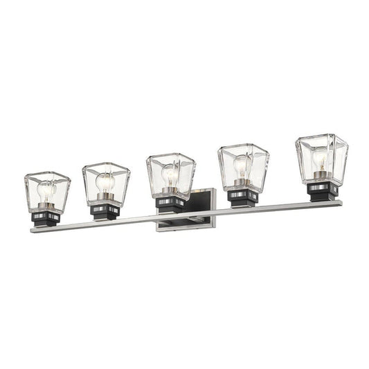 Z-Lite Jackson 42" 5-Light Brushed Nickel and Matte Black Vanity Light With Clear Glass Shade