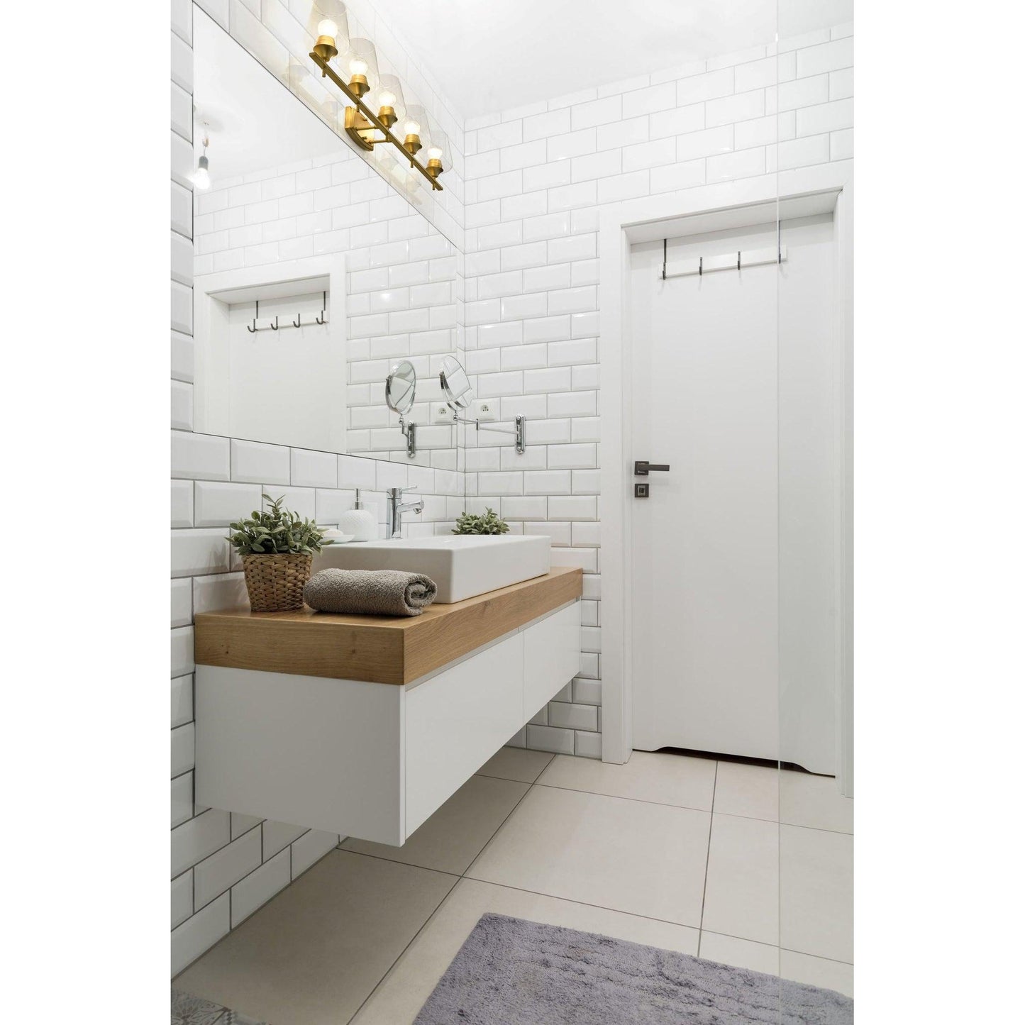 Upscale sophistication with a Mid-Century Modern vibe tells the story of this elegant five-light vanity light. A blend of delightful materials offers stunning large glass shades with rich Olde Brass finish metal, delivering a gorgeous effect in a custom master or guest bath suite.