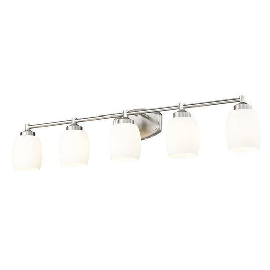 Z-Lite Kendrick 39" 5-Light Brushed Nickel Steel Vanity Light With Matte Opal Glass Shade