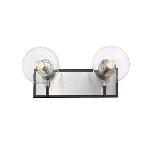Upgrade the ambiance of your home with this clean, crisp two-light vanity. It's crafted with a matte black and brushed nickel finish and clear glass shades that deliver plenty of radiance. It's ideal for a bathroom, powder room, or bedroom with its mix of modern glam and edginess.
