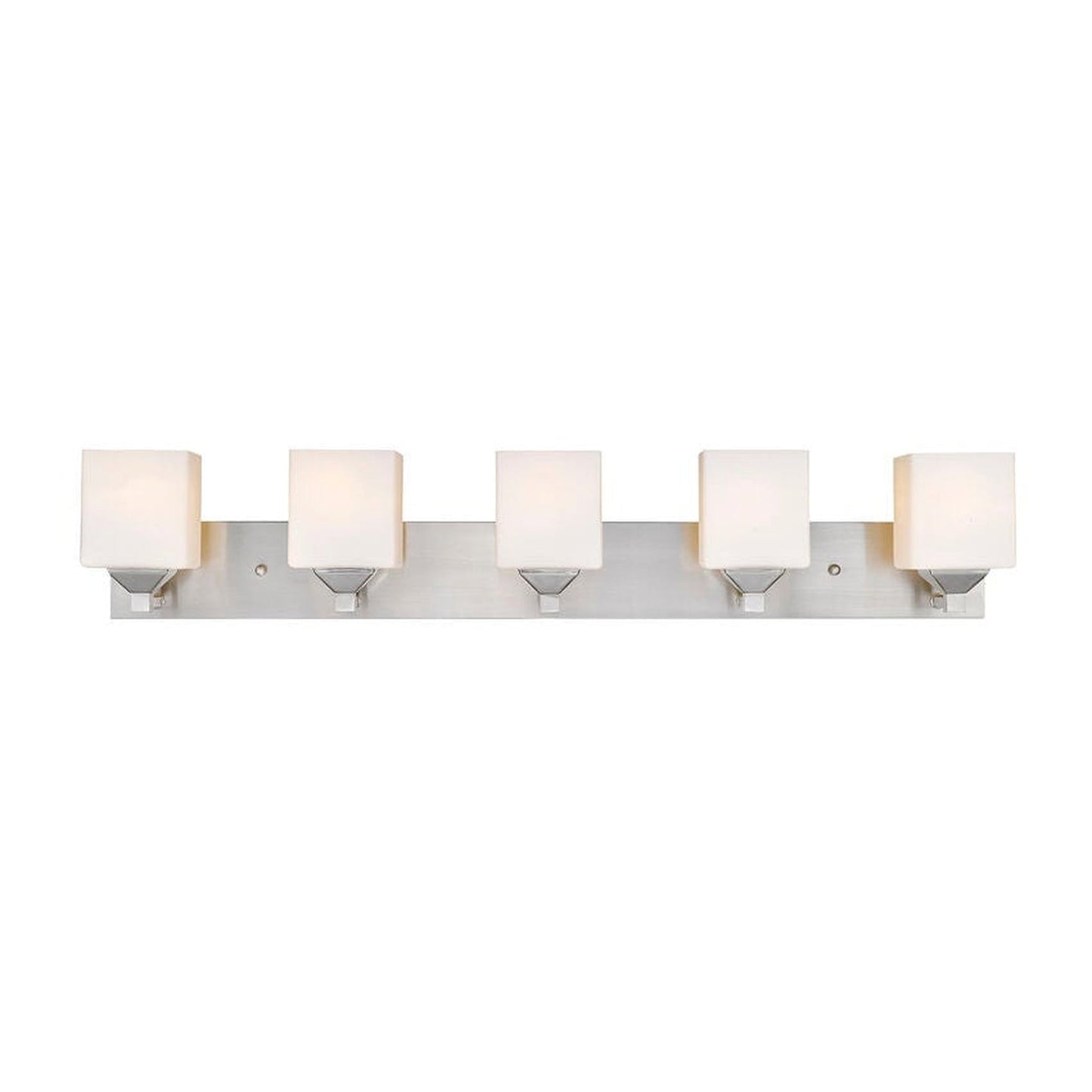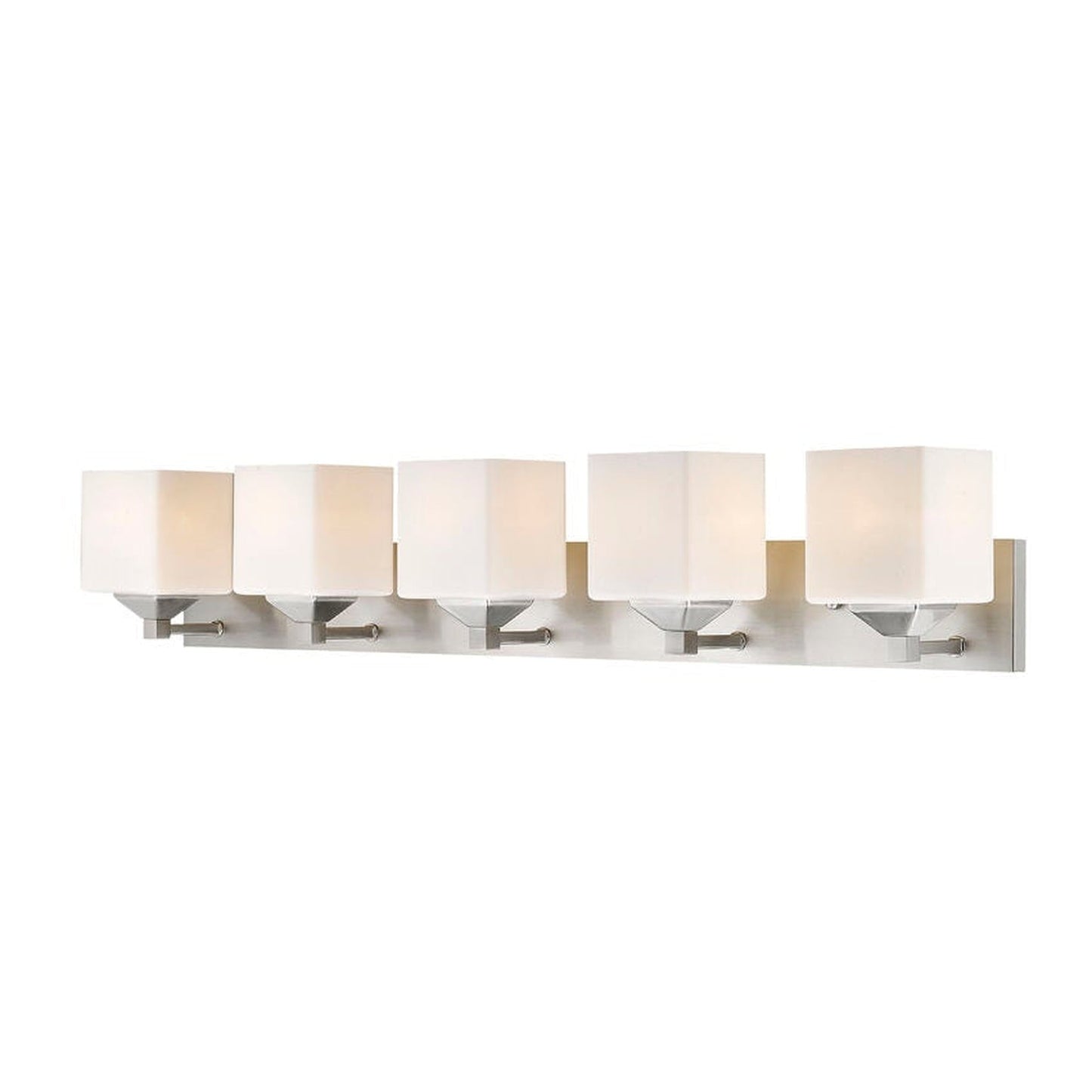 Z-Lite Quube 39" 5-Light Brushed Nickel Vanity Light With Matte Opal Glass Shade
