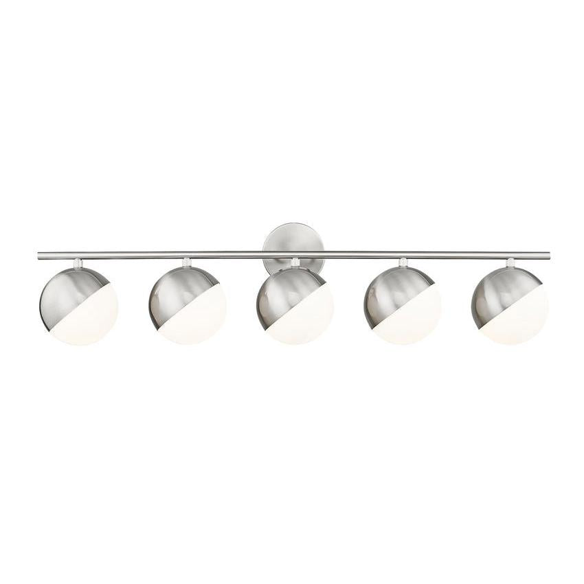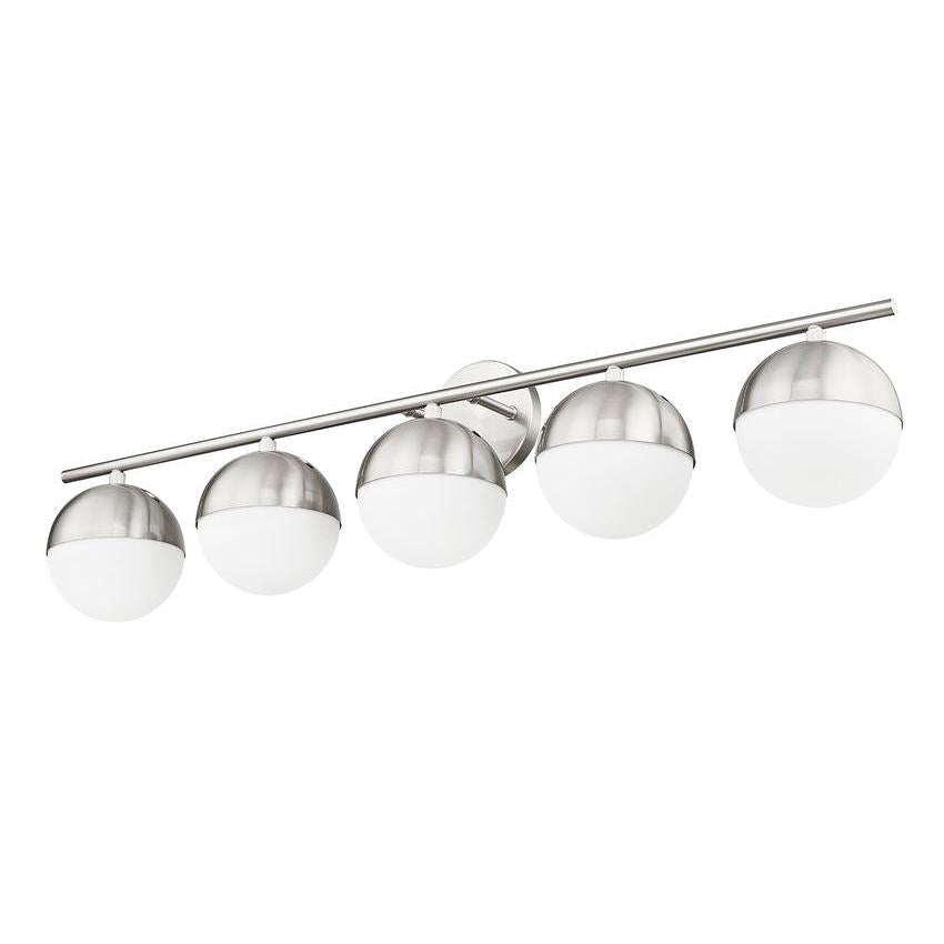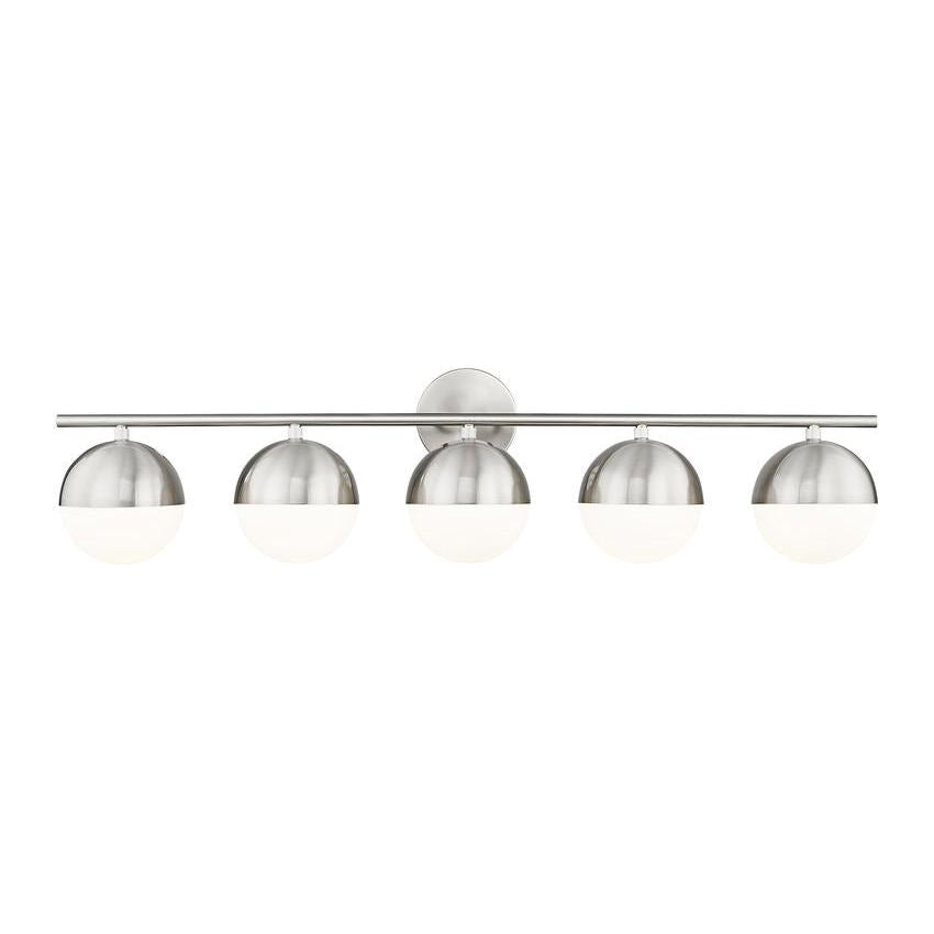 Z-Lite Realm Sphere 40" 5-Light Medium Base Brushed Nickel Steel Matte Opal Glass Shade Vanity Lighting