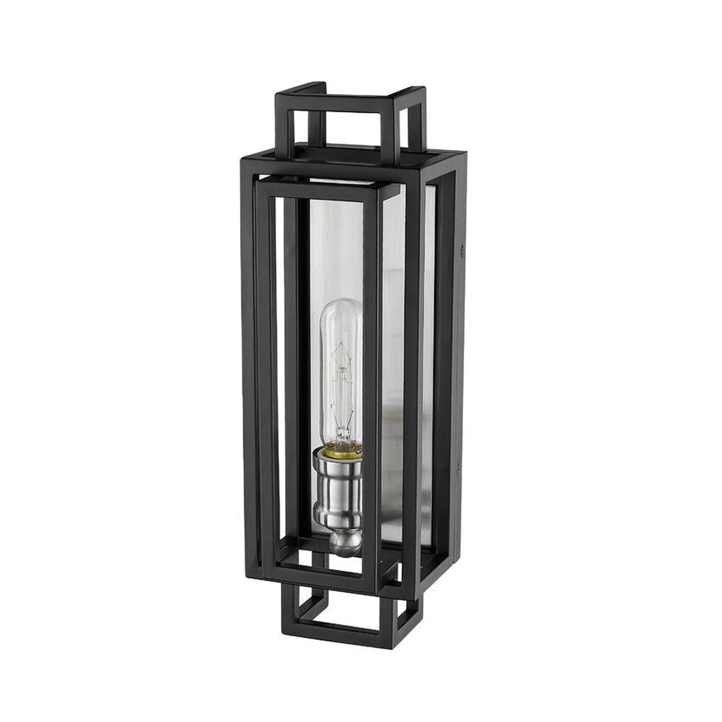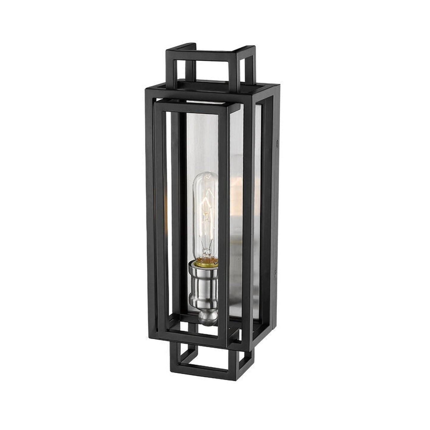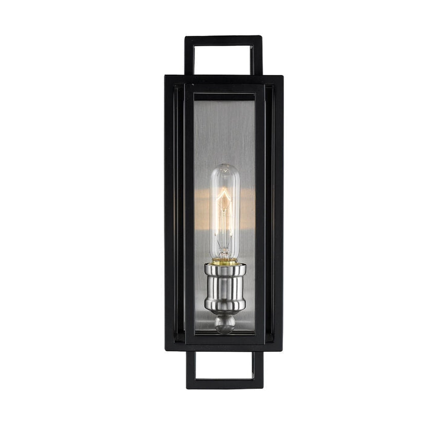 Exquisitely crafted with bold, black lines surrounding a gleaming, brushed nickel frame, this single-light wall sconce will illuminate your home in style. This handsome fixture looks especially elegant in a bedroom, or with one placed on each side of a bathroom mirror.