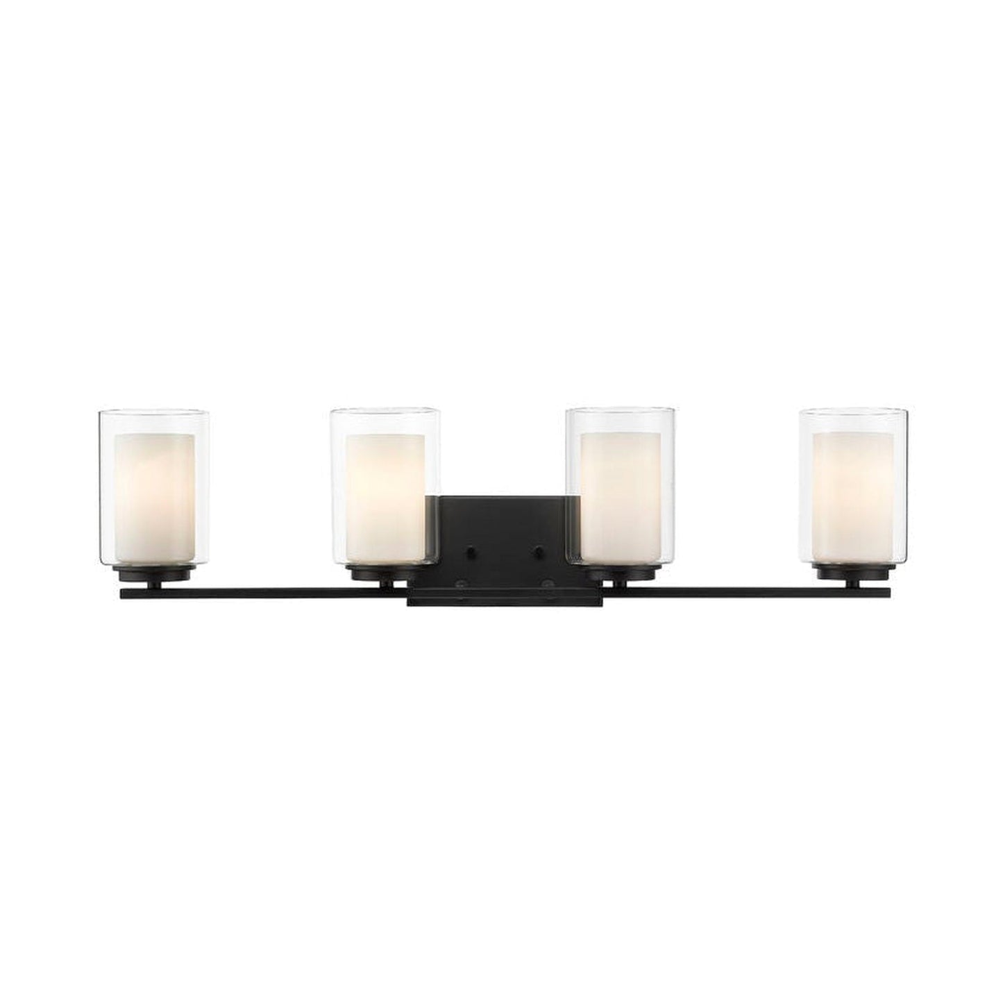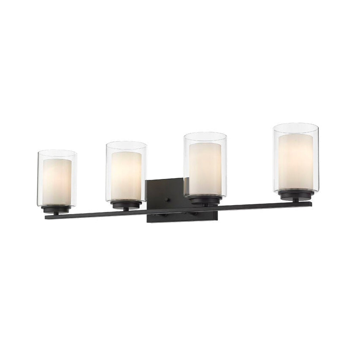 Z-Lite Willow 32" 4-Light Matte Black Vanity Light With Clear and Matte Opal Glass Shade